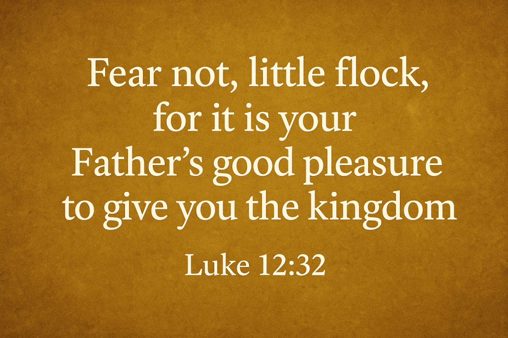 “Fear not, little flock, for it is your Father’s good pleasure to give you the kingdom” (Luke 12:32). What a tender word from our Savior. He knows how easily our hearts tremble—when we feel weak, when the way is hard, when the enemies of our souls seem strong, when we are painfully aware of our own unworthiness and inadequacies. Yet Jesus quiets every fear with one promise: The Father delights to give us His kingdom.